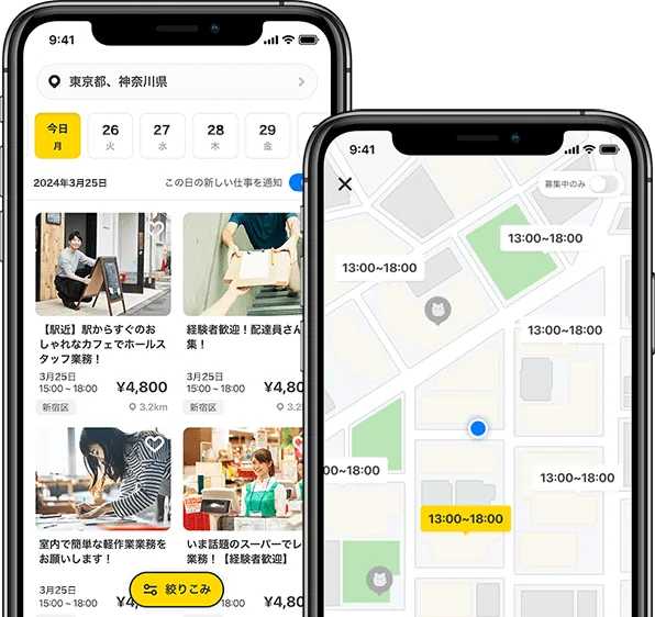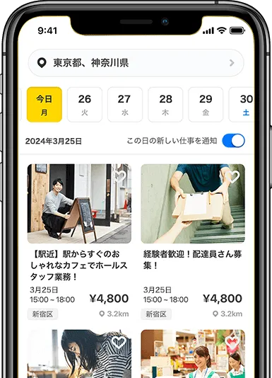 申し込んだお仕事は1日単位で終了します。シフト制ではないので、複数日拘束されることはありません。