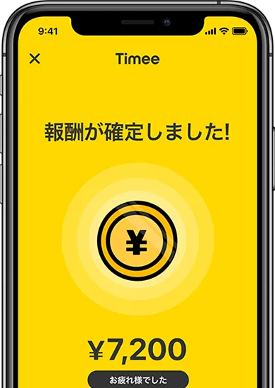 即日振り込みチェックアウト(勤務終了)後に報酬が確定します。登録先の銀行口座へ振り込み申請を行えば即日でお給料がゲットできます。