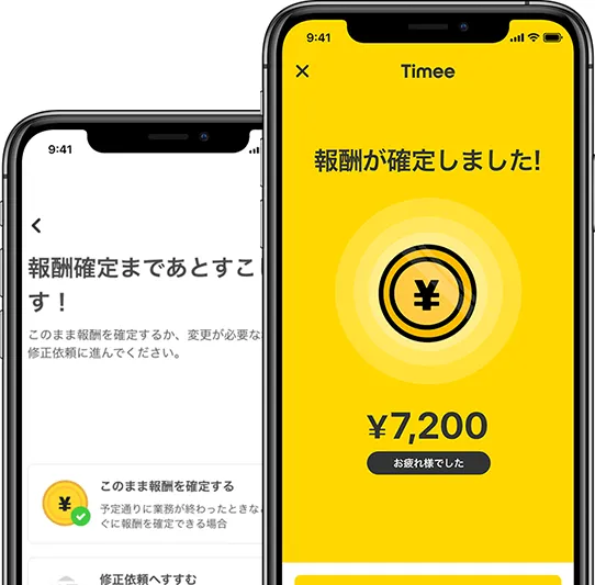 予定時間より多く働いた際は、アプリから就業時間の修正を行うことで残業代を受け取ることが可能です。