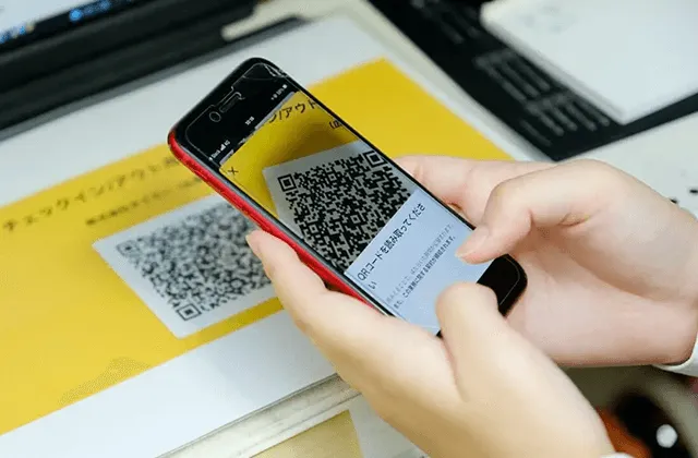 お仕事を始めるとき、終わるときに、お店にあるQRコードを読み込みましょう。